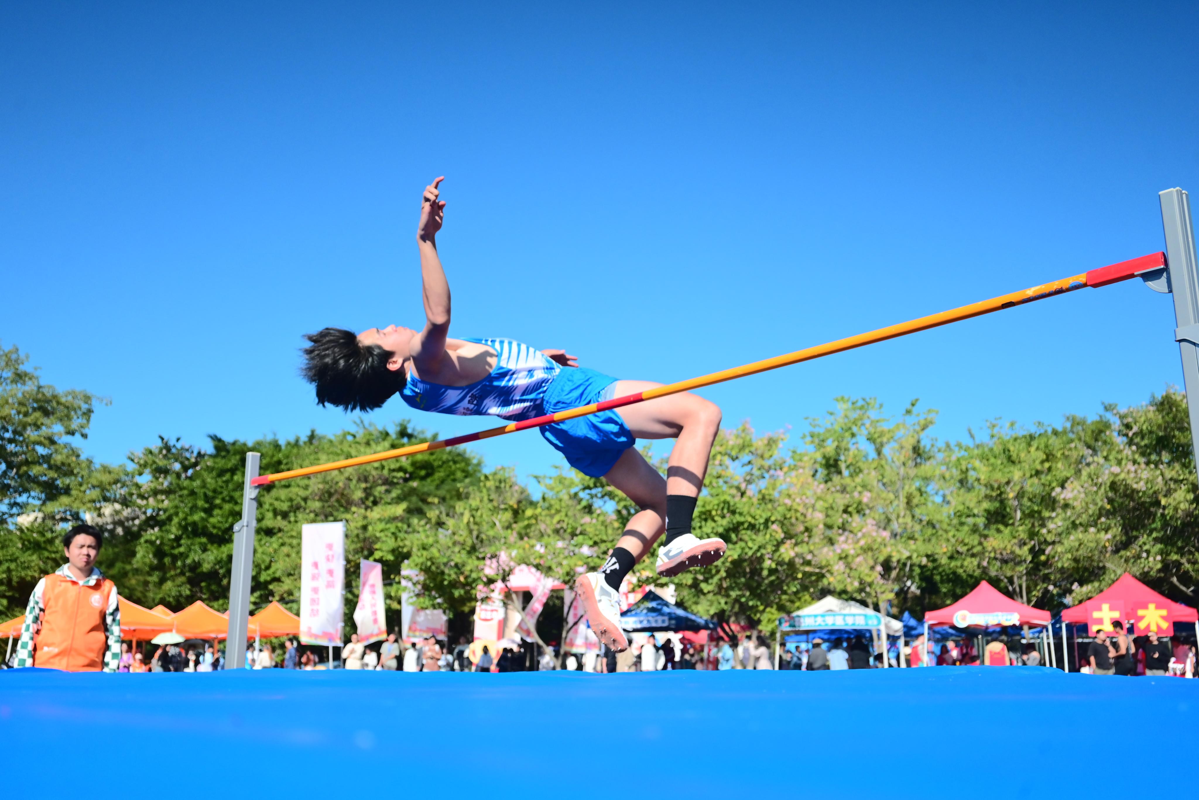 融媒中心讯/11月14日上午,第54届校运会男学甲跳高(七项之五)、男学乙跳高(七项之五)、女学甲跳高(五项之一)、女学乙跳高(五项之一)决赛在一区田径场相继展开激烈角逐。