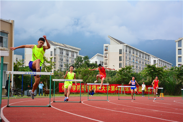 比赛分为两组举行。一声枪响,运动员们齐刷刷冲出起跑线,奔跑、起跳、和跨栏这一系列动作一气呵成。第一小组的比赛中,来自生工学院的陈文凯接连反超其他选手,成为第一个冲向红线的选手。而在第二小组赛中,来自生工学院的白锦涛一直保持领先,其他运动员们紧随其后。特别的,来自紫金学院的刘俊荣和生工学院的李义嘉跨栏时虽被绊倒摔在地上,但仍起身坚持跑向终点,其坚持不懈的体育精神飞扬于整个运动场上。