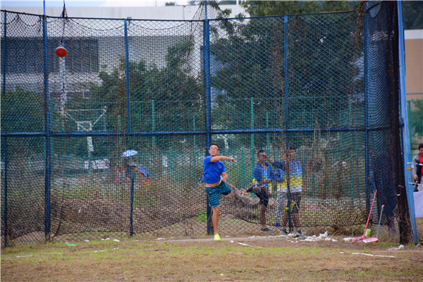 本次比赛的地点虽是在较为偏僻的三区外场举行,但仍有不少的观众来到现场观看助威。现场气氛活跃,随着选手的半身旋转,观众的一声呐喊,一道近乎完美的弧线从空中划过、落地。来自土木学院的周博特的表现特别显眼,不仅仅投掷的成绩特别优异,而且还一次次刷新自己的记录。现场观众不断欢呼,比赛氛围逐渐被推向高潮。