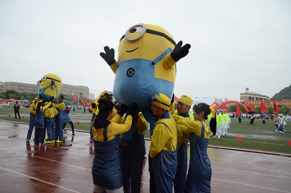 青春、活泼、朝气是很多代表队想要表现的主题,今年有数支学院代表队选择以玩偶的方式来更加生动地表现这一主题。第一个出场的厦门工艺美院代表队,秉承上一年卡通人物形象的创意,他们关注娱乐的焦点,紧随电影的热潮,以小黄人的形态,一入场就吸引了所有人的目光。随着“叭叭叭叭”特别的音乐响起,憨态可掬的小黄人用笨拙的舞蹈点燃了运动场的气氛,可爱的表演萌翻全场。