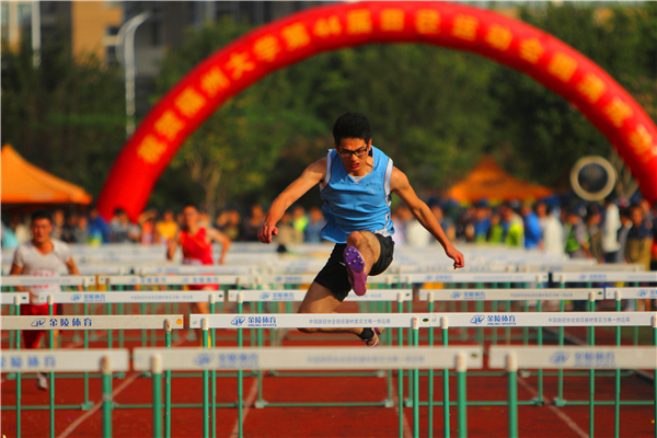 裁判员挥旗示意,一声枪响,第一组的选手冲出了起点。起步、蹬脚、跨栏、落地,一个个动作完美衔接。第一组的三名选手距离拉得非常紧,最终法学院的运动健儿率先冲过了终点线。第二组的比赛更为精彩,比赛一开始,来自材料学院的刘灯宪同学就保持了绝对的优势,他起步上栏十分敏捷,最终获得了17.9s的好成绩。