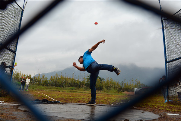 11月12日上午9时,福州大学第44届田径运动会,男教青铁饼预决赛在三区田径场外揭开帷幕。
