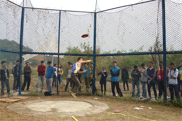 在几分钟热身结束后,激烈的比赛开始了。本场比赛共分三组进行,来自阳光学院的陈忠勇在第一轮投掷中就掷出惊人成绩,但由于超出黄线被判无效。在第二轮比赛中,他调整心态,掷出了30.39米的好成绩。在第二、第三轮的投掷中,陈忠勇同学发挥持续稳定,成绩优异。