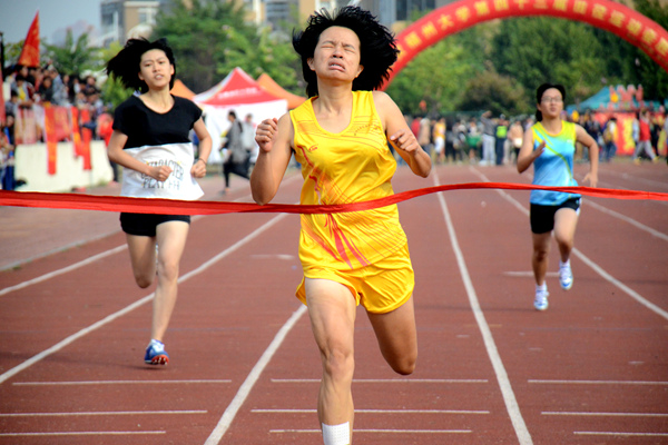 本次比赛分3组进行,比赛前5分钟,选手们都已经检阅完毕。她们在原地做着热身运动,颇有专业运动员的感觉。第一组比赛中,来自石化学院的朱雅萍在开始的20米中便超过了其他选手,以绝对的优势取得了小组第一。第三组比赛中,第3道法学院的张慧铃更是在弯道处奋起直追,逐渐超越了所有的选手。