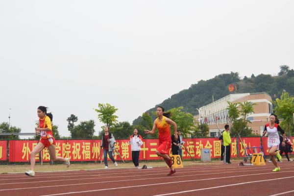 随着发令枪响,运动员们闪电般向前冲刺,你追我赶,难分伯仲。场上的加油鼓劲声一浪接着一浪,鼓舞着运动员们的士气。临近终点,运动员们更是卯足了劲儿,为第一的荣耀而战,位于第四道的来自经管学院的刘含书和第五道的来自厦门工艺美院的林玲洲之间的比拼更是进入了白热化阶段,最后关头,两人几乎同时到达终点。