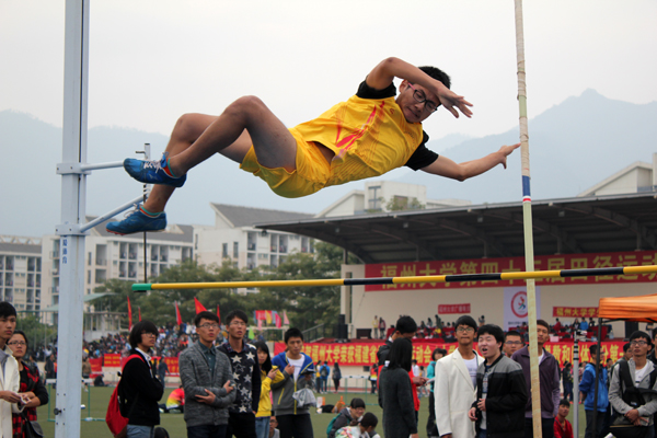 石化学院何杰夺得男学乙铁饼(十项之七)冠军