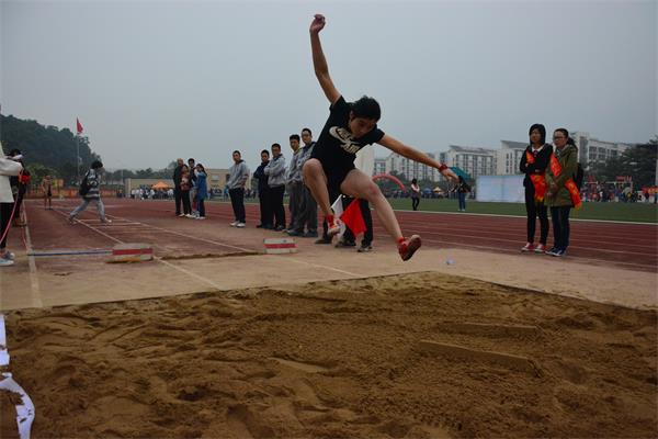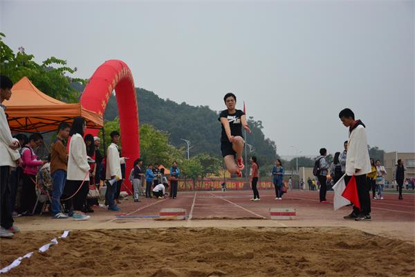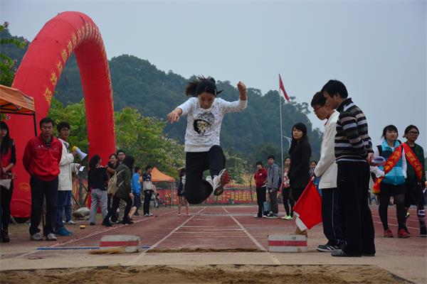 女教工跳远比赛分预赛和决赛两轮举行。运动员一个接一个,助跑、起跳、腾空、飞跃、落地,一连串的动作划出一道道优美的弧线,飞扬的沙土是运动员们内心久久不能平息的写照。经过预赛的角逐,来自数计学院的林秀燕老师、经管学院的章小妹等八位老师进入决赛。