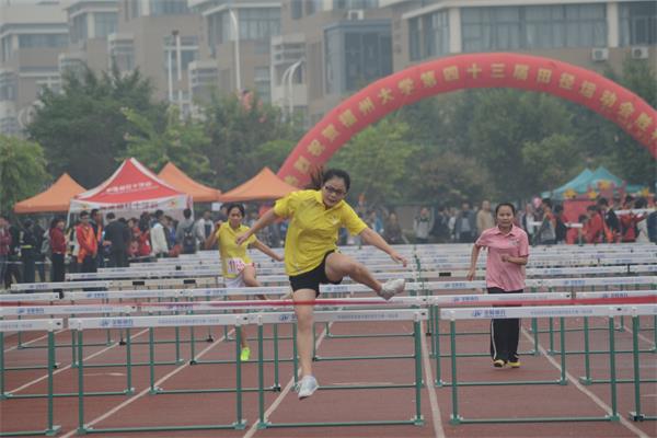 2014年11月13日上午,福州大学第43届田径运动会女教青100米栏决赛项目在一区田径场举行。共有8名来自不同学院的青年女教师参加了本次决赛。