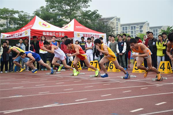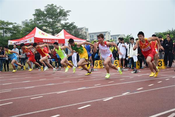 9时的枪声准时响起,作为十项全能的第一个赛程,“全能王”们都拼尽全力。他们奋力冲刺如离弦之箭,来自工艺美院的林福建率先冲破突围,在短短的100距离中始终保持领先地位,最终领跑全程。
