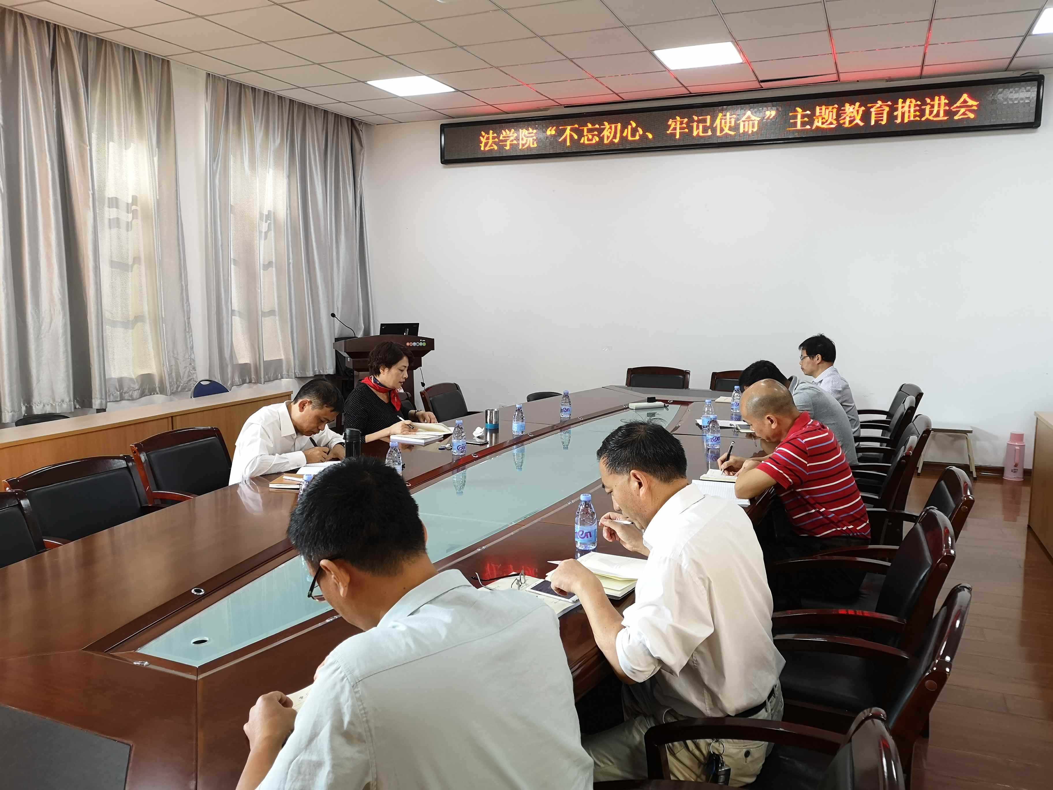 新闻中心讯/10月21日上午,法学院在院233会议室召开了“不忘初心、牢记使命”主题教育推进会,院党委委员参加了本次会议。