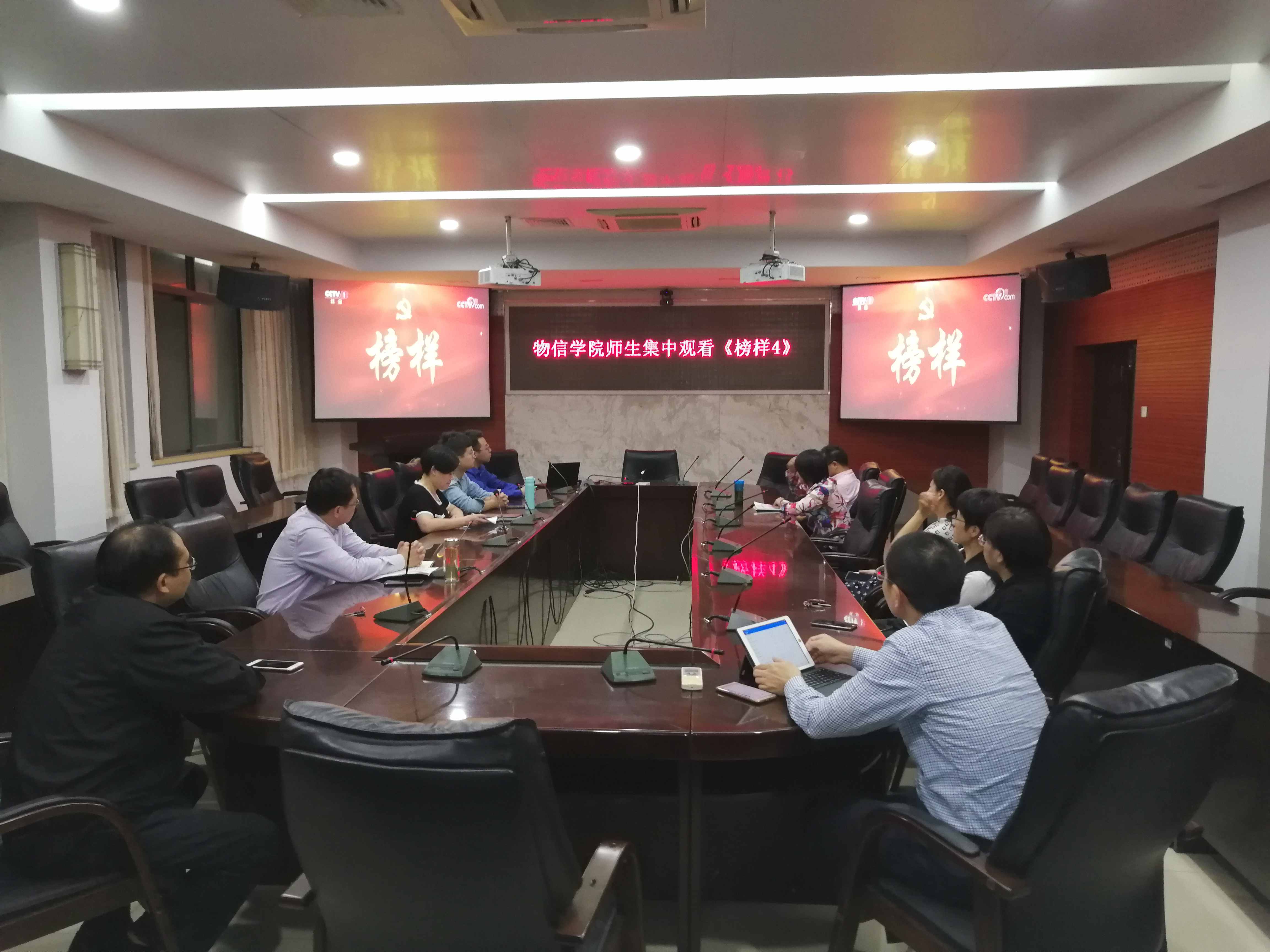 新闻中心讯/10月21日晚上,物信学院在祥联厅组织集中观看中央电视台播出的《榜样4》节目,作为学院“不忘初心、牢记使命”主题教育的一项重要学习内容。学院党政领导干部、党委委员、机关支部党员、辅导员等参加节目观看。