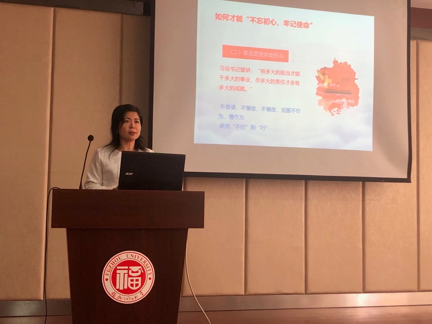 首先,院长汪少芸围绕“不忘初心、牢记使命”这一主题,指出了要牢牢把握主题教育的根本任务和总体要求,紧密结合食品专业,做好专业发展规划,努力提高自身的专业性。