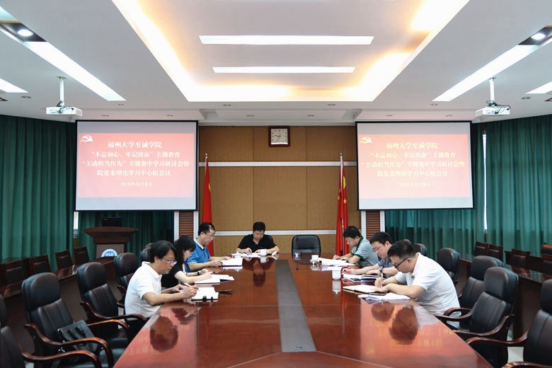 新闻中心讯/10月8日上午,至诚学院党委在怡山校区至诚学院行政楼会议室召开党委理论中心组学习会,开展“不忘初心、牢记使命”主题教育第五专题集中学习研讨。与会人员围绕“主动担当作为”这一主题进行研讨交流。集中学习研讨会由至诚学院党委常务副书记刘松青主持。