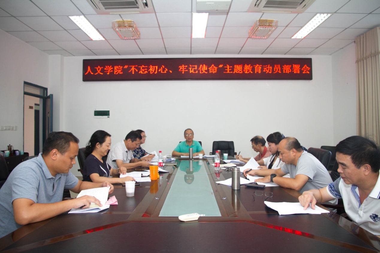 新闻中心讯/9月19日,福州大学人文学院党委召开“不忘初心、牢记使命”主题教育工作动员部署会议,会议由院党委书记林秋生主持,学院全体党政领导班子、党委委员、科级干部等出席了会议。会议传达并学习了中央、省委、校党委关于开展“不忘初心、牢记使命”主题教育精神,成立了学院主题教育领导小组和工作机构,同时审议通过《中共福州大学人文社会科学学院委员会开展“不忘初心、牢记使命”主题教育工作方案》。