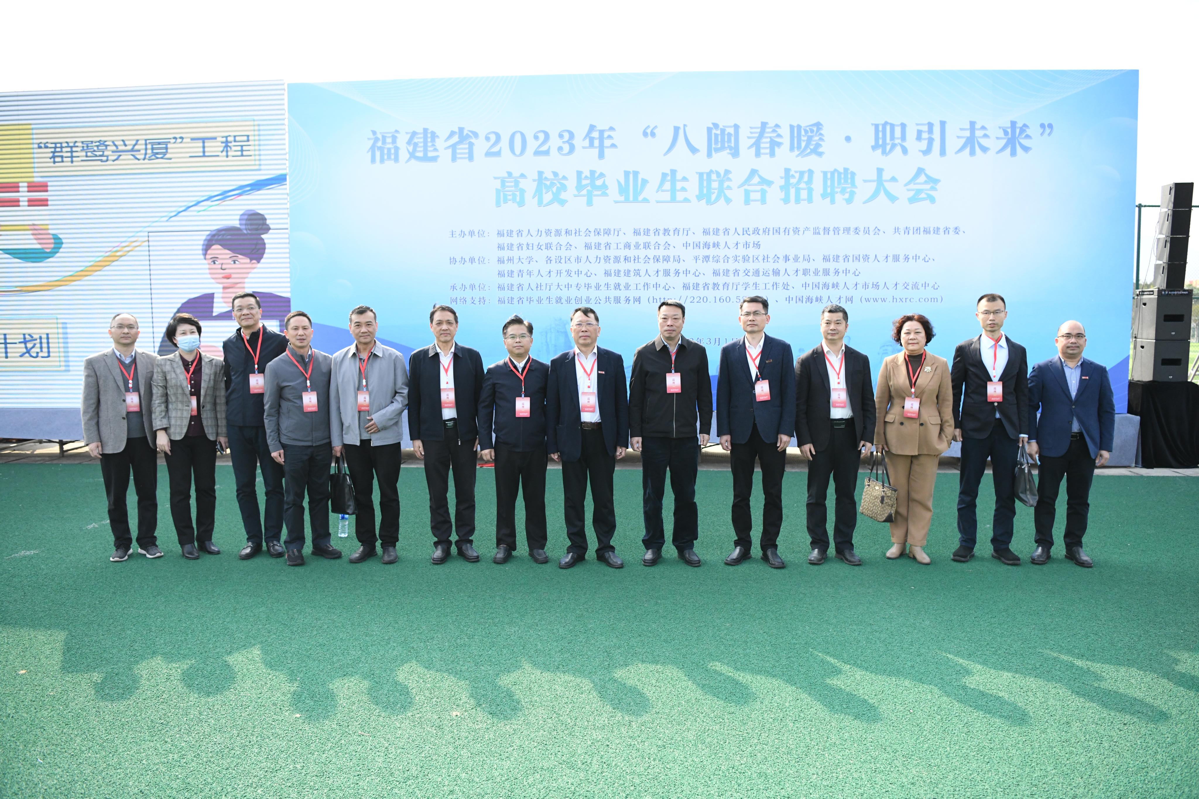融媒中心讯/3月1日下午,由福建省人力资源社会保障厅、福建省教育厅、福建省人民政府国有资产监督管理委员会、共青团福建省委、福建省妇女联合会、福建省工商业联合会、中国海峡人才市场共同举办、福州大学协办的福建省2023年“八闽春暖 职引未来”高校毕业生联合招聘大会在我校旗山校区第二田径场顺利举行。校党委书记陈国龙、党委副书记黄身勇、副校长林键陪同主办单位相关领导视察指导。