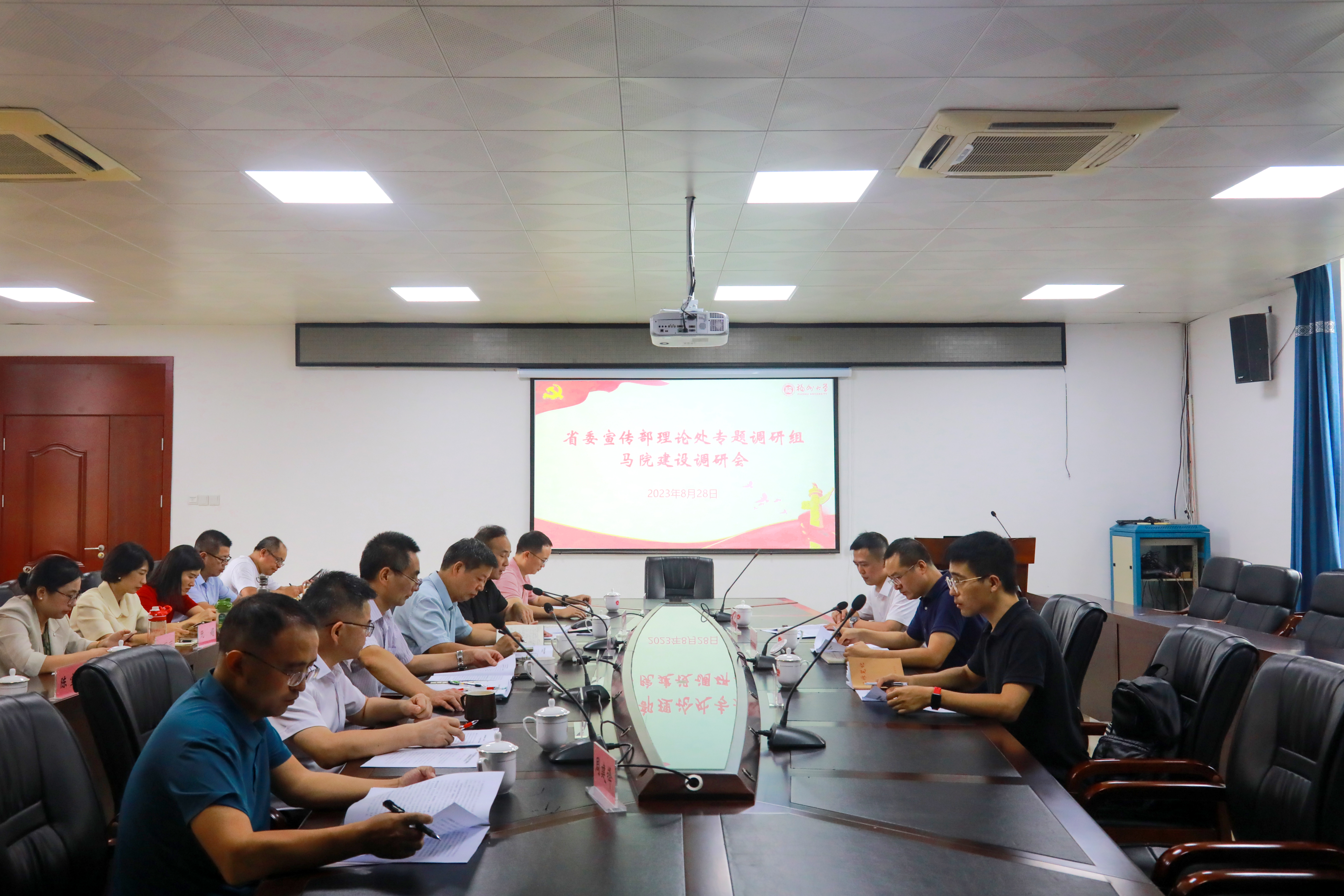 融媒中心讯/8月28日下午,福建省委宣传部理论处负责人、省委宣传部社动中心主任梁兆国一行莅临我校,以座谈交流与实地考察相结合的形式开展调研。校党委宣传部、马克思主义学院相关负责同志陪同调研。
