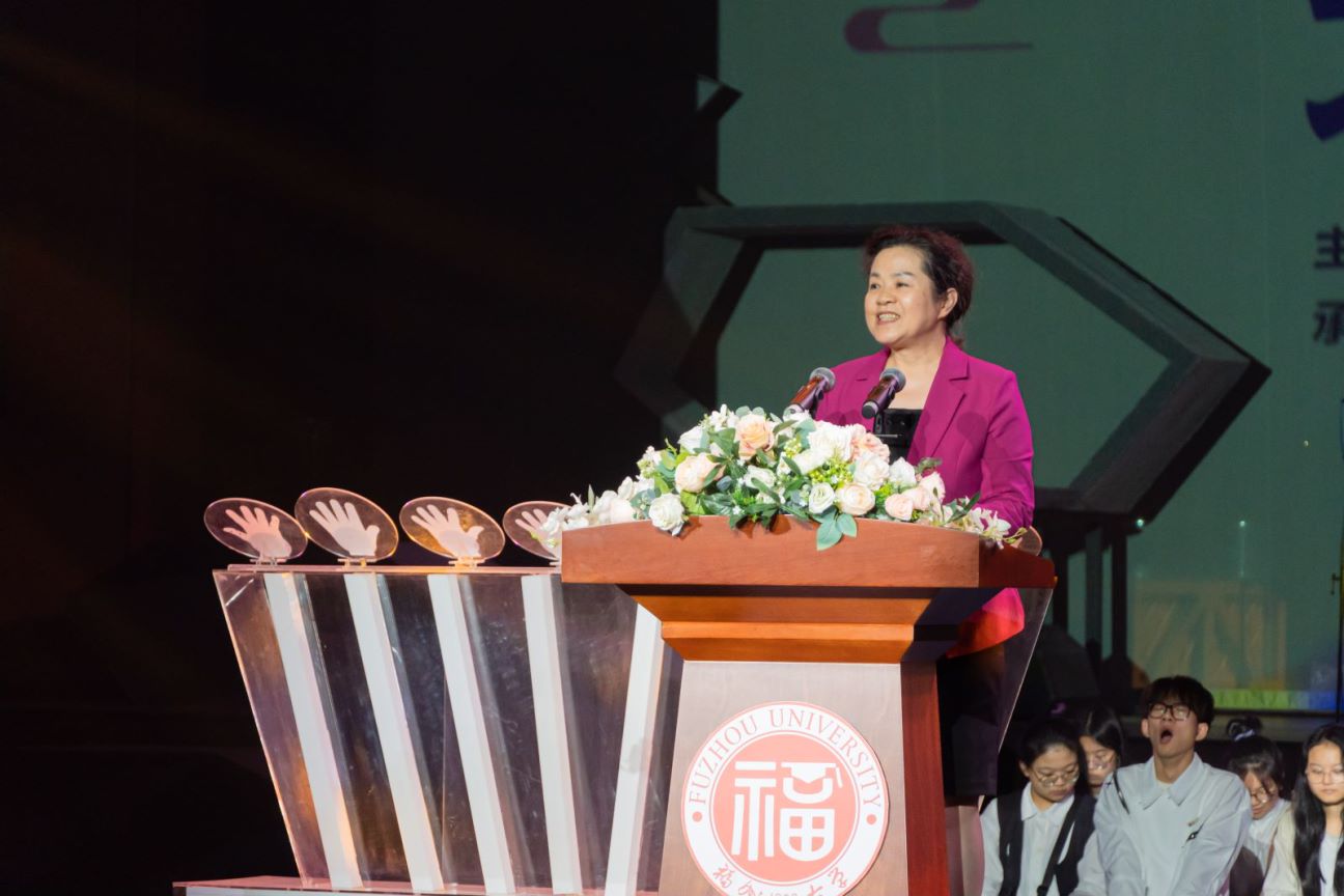 省文联党组书记王秋梅致辞,她代表主办方省文联和省教育厅向长期关心支持我省校园戏剧事业的社会各界表示衷心的感谢,并对福州大学六十五周年校庆表示诚挚的祝贺。她指出,大学生戏剧节耕耘十载、芬芳满园,为福建戏剧事业蓬勃发展注入了新的活力。大学生最具青春朝气,是国家的未来和希望,是推动中华优秀文化传承发展的重要力量。希望广大大学生和青年朋友们走近戏剧、爱上戏剧、倾心戏剧,传承发展闽派戏剧,赓续福建文脉,坚持守正创新,讲好福建故事、中国故事,为建设文化强省、文化强国贡献青春和力量。