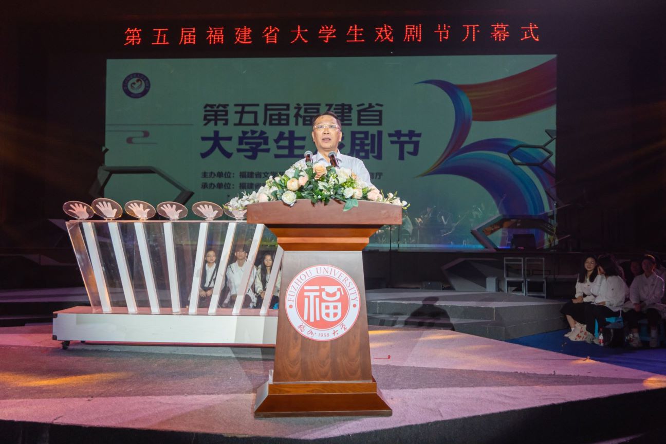 开幕式伊始,福州大学党委书记陈国龙发表致辞,他指出,戏剧是中华文化的瑰宝,是传承和弘扬中华优秀传统文化的重要载体。高校立身之本在于立德树人,戏剧是美育的重要手段。福州大学坚持把科学与艺术紧密结合起来,推动科学精神与人文精神、美育精神深度融合,将美育贯穿学校人才培养全过程,不仅重视学生的知识学习和能力培养,更加重视学生的价值塑造和人文情怀培育。本届大学生戏剧节将精彩展示新时代大学校园生活和青年精神风貌,彰显“真、善、美”的人文情怀和美学理念;搭建起互相交流、分享和学习的平台,进一步增进戏剧文化交流互鉴;传承和弘扬中华优秀传统文化,有力推动全省戏剧事业繁荣发展。