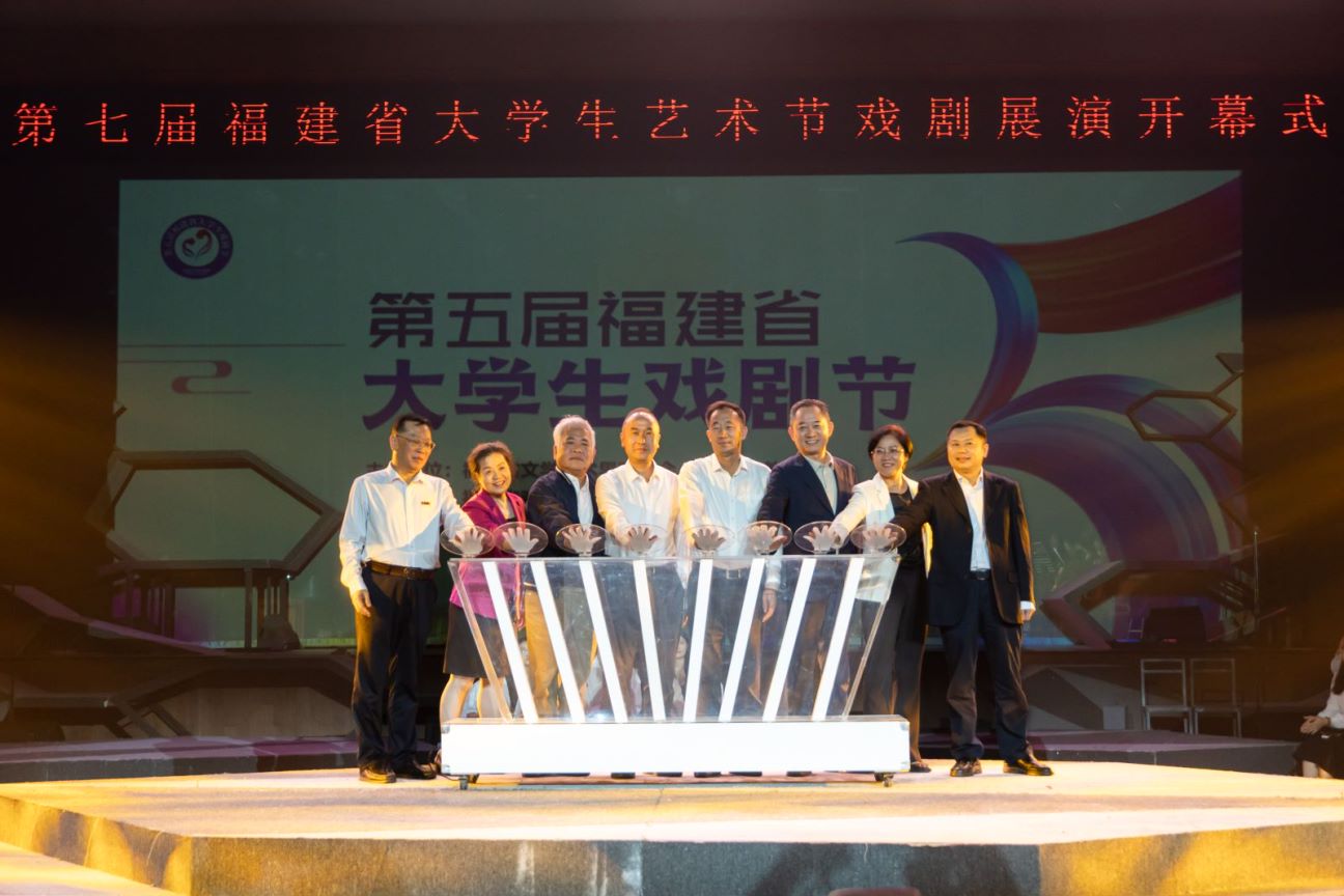 致辞结束后,李德金、黄如欣、刘伟泽、王秋梅、陈丽英、陈国龙、吴新斌以及陈永森等领导登台共同为本届大学生戏剧节暨艺术节戏剧展演启幕。第五届福建省大学生戏剧节暨第七届福建省大学生艺术节戏剧展演正式开始。