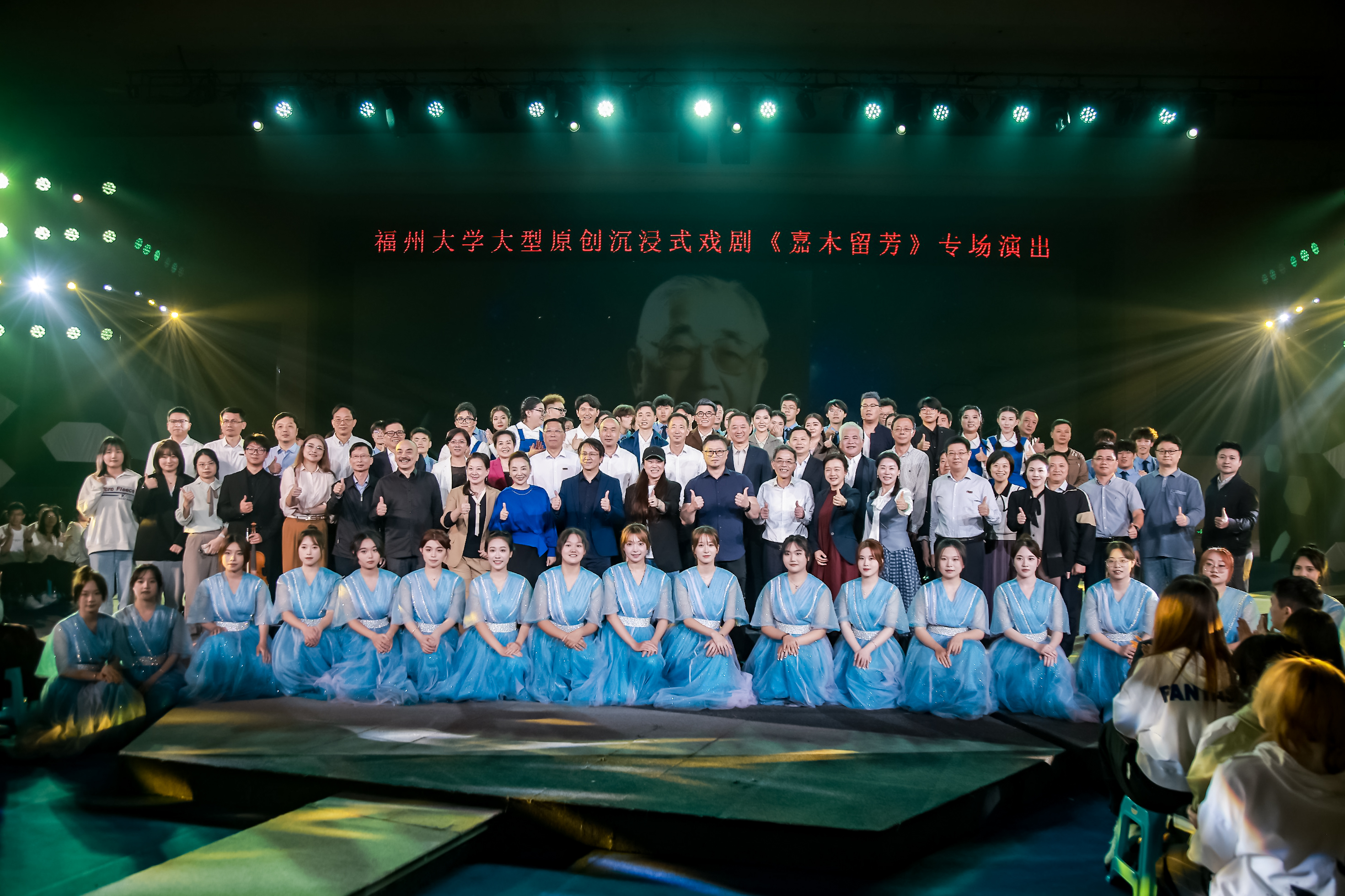 随后,与会嘉宾与来自福建医科大学、福建中医药大学、福建理工大学、福建江夏学院、闽江学院等高校的师生代表近千人共同欣赏福州大学大型原创沉浸式戏剧《嘉木留芳》,该戏剧艺术地再现了卢嘉锡先生爱国奉献、严谨求实、奖掖后进、追求卓越的一生,进一步深化和拓展了福州大学以张孤梅同志为代表的艰苦奋斗的创业精神、以卢嘉锡先生为代表的严谨求实的治学精神和以魏可镁院士为代表的勇于拼搏的奉献精神的“三种精神”。