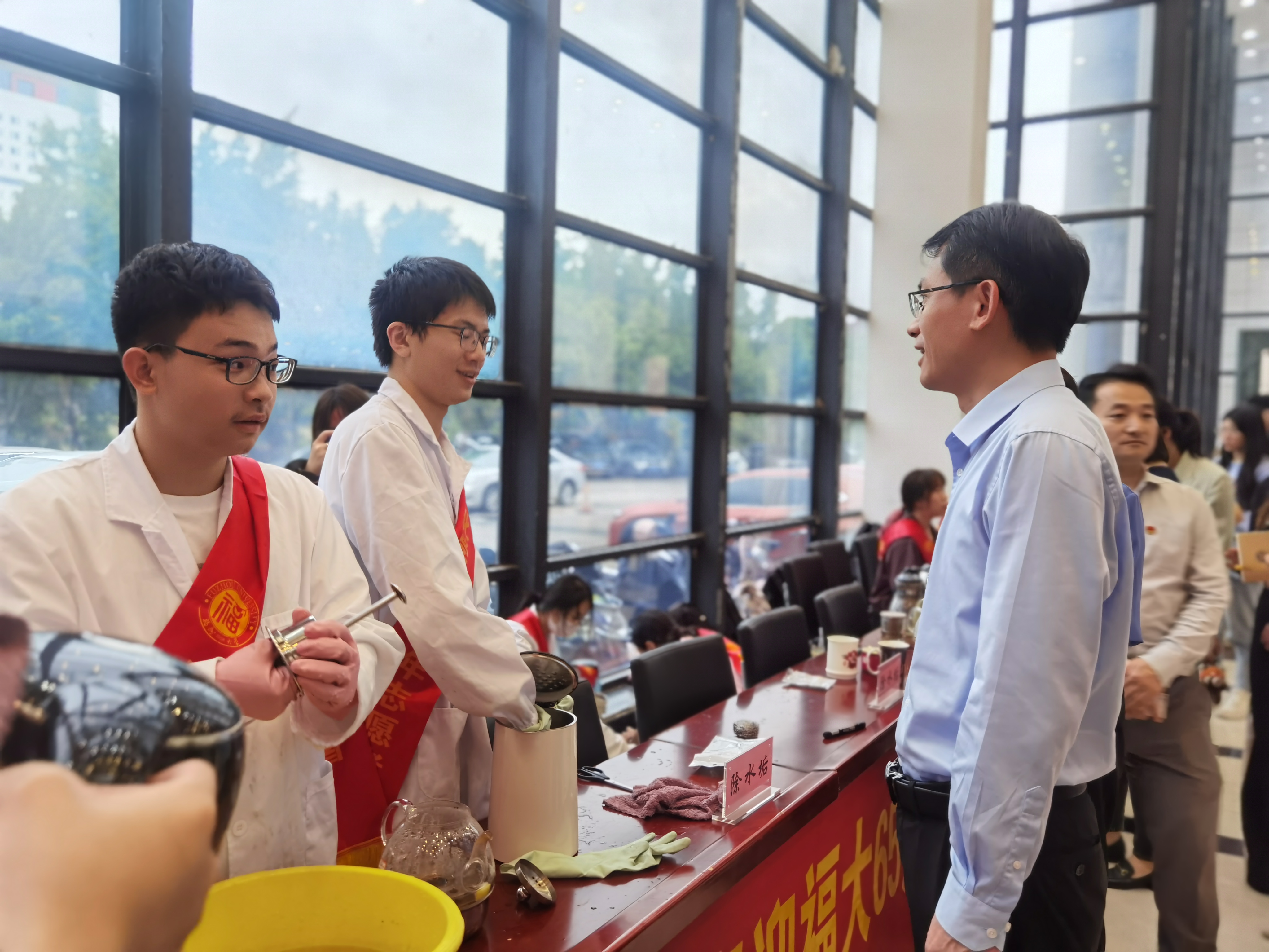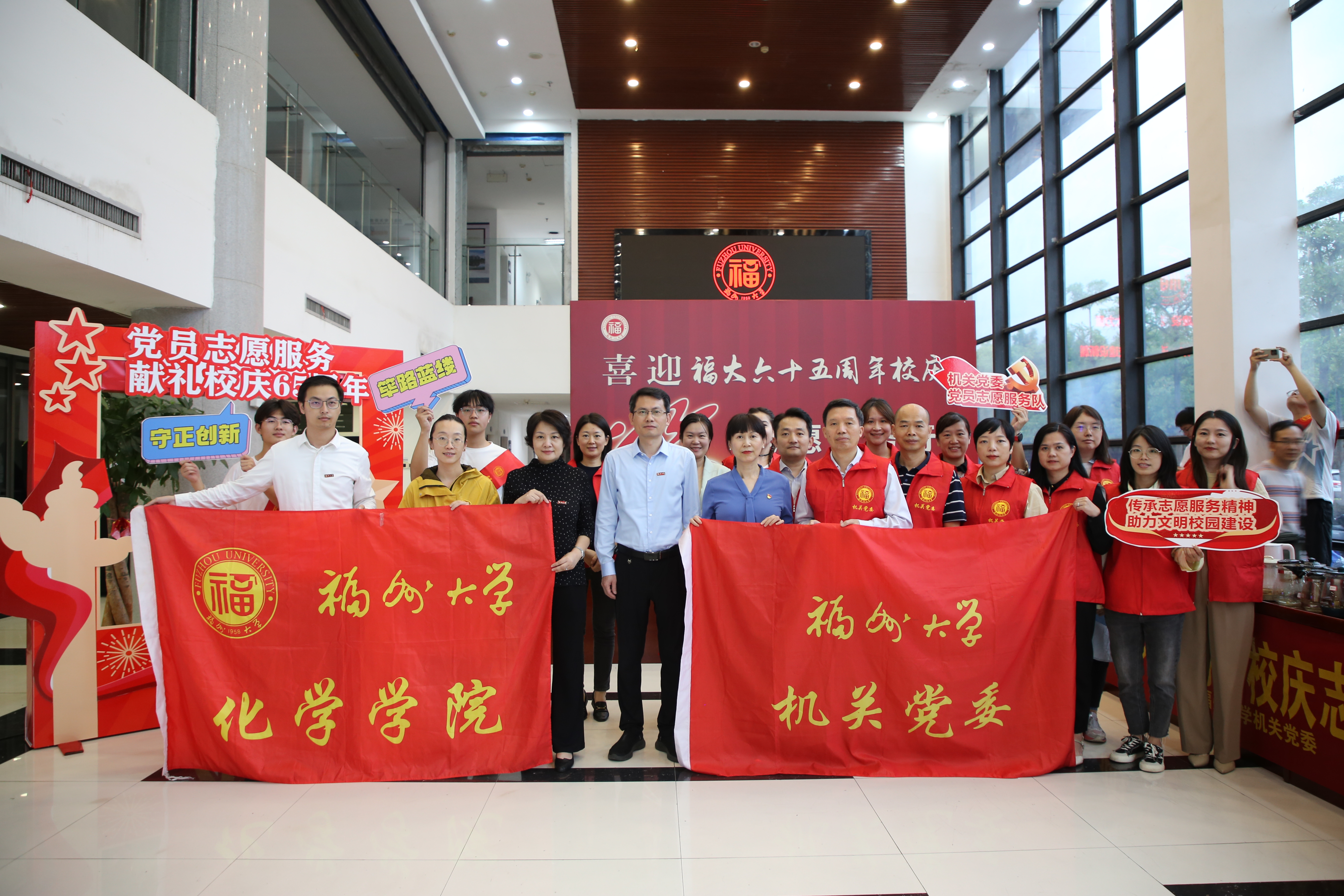融媒中心讯/为庆祝福州大学建校65周年,持续深化“我为群众办实事”,10月20日下午,机关党委、化学学院党委在行政北楼一楼联合开展“喜迎福大65周年校庆志愿服务行”志愿服务活动,校党委黄身勇副书记到现场看望志愿者,详细了解志愿服务开展情况。