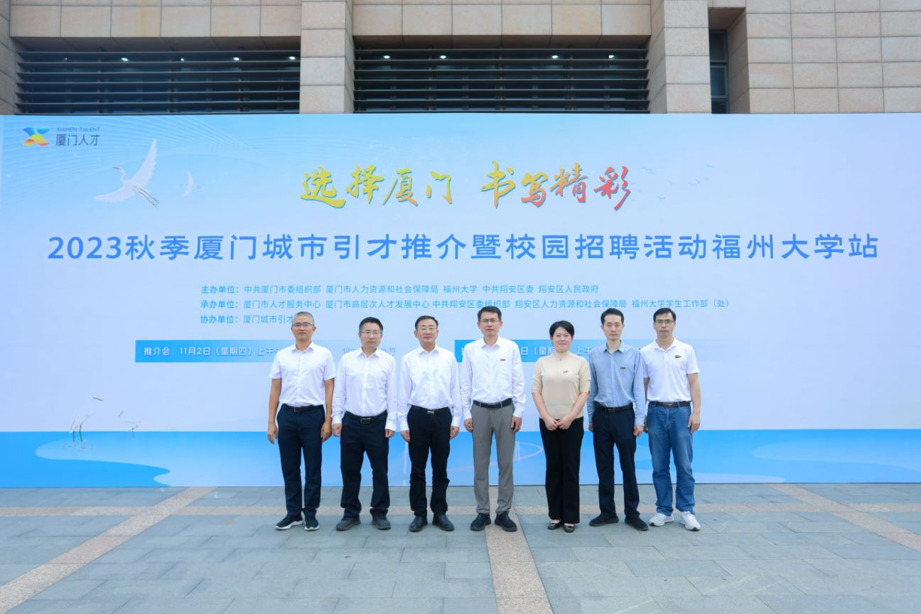 融媒中心讯/11月2日上午,2023秋季厦门城市引才推介暨校园招聘活动在我校旗山校区福万广场举行。本次活动由中共厦门市委组织部、厦门市人力资源和社会保障局、中共翔安区委、翔安区人民政府、福州大学联合主办。厦门市人社局党组书记、局长赖祖辉,校党委副书记黄身勇,厦门引才部门和校学生工作部(处)负责人等领导莅临现场指导。
